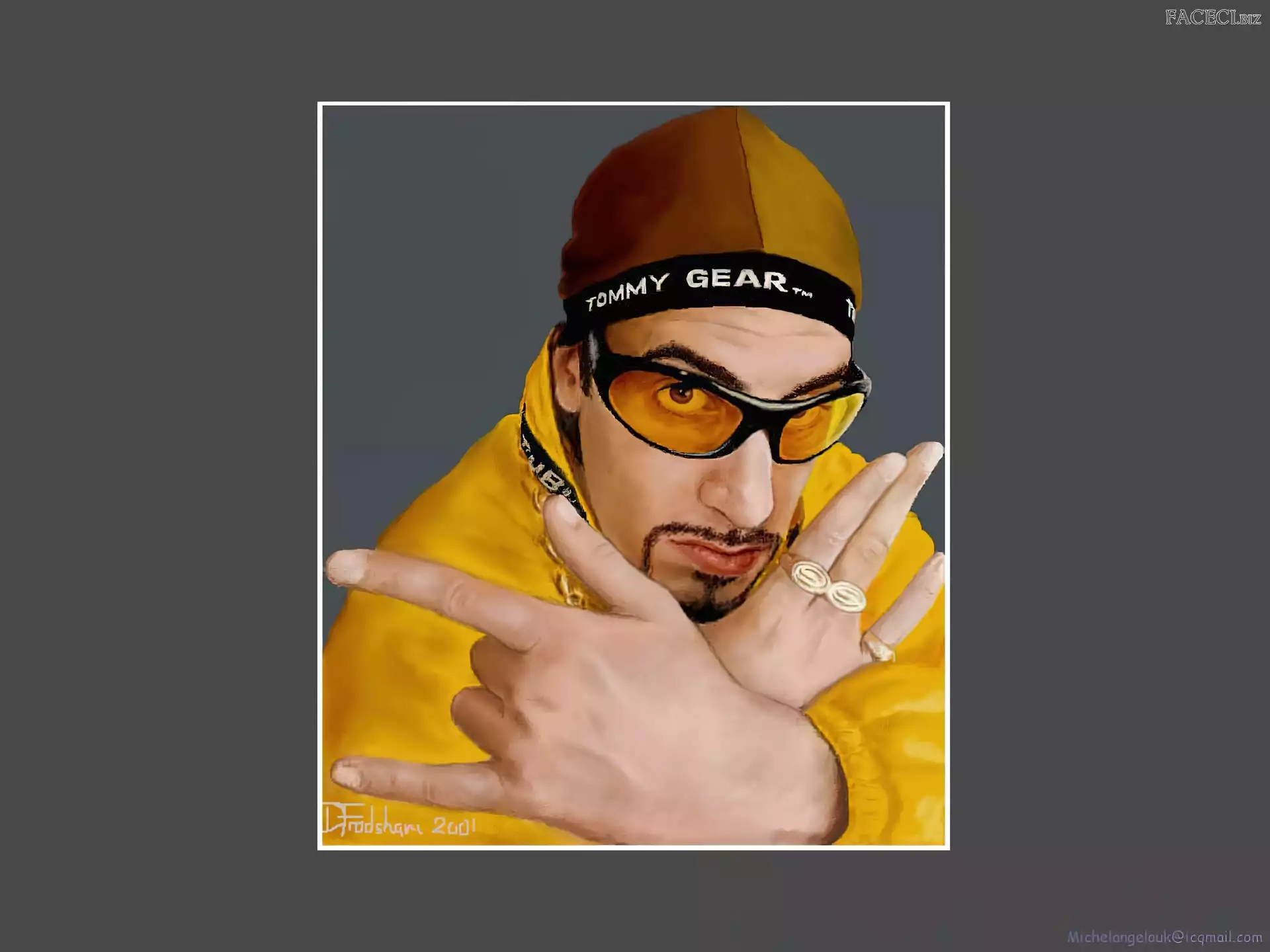 Sasha Baron Cohen, gruby łańcuch Sasha Baron Cohen, ali g Sasha Baron Cohen, niebieski dres złoty strój, Sasha Baron Cohen, okulary Sasha Baron Cohen, zdjęcia Sasha Baron Cohen, borat Sasha Baron Cohen, żółty strój